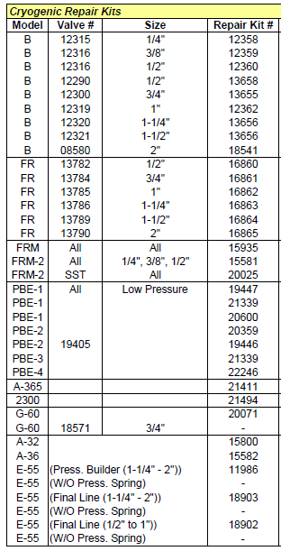 Tyco / Cash Valve Repair Kits